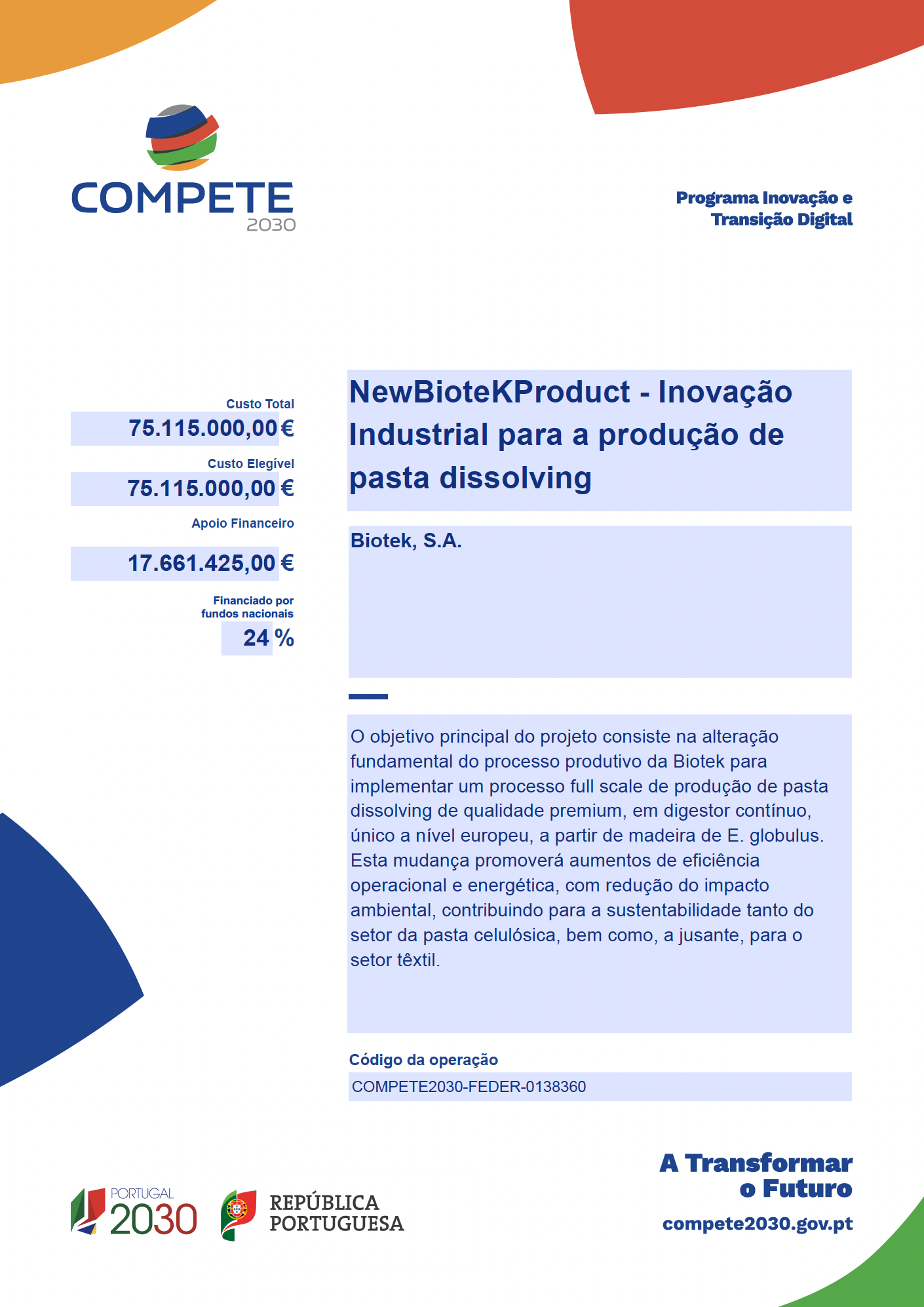 Com os olhos no futuro este projeto contou com a experiência reconhecida da Biotek na produção industrial de pasta de celulose, o vasto conhecimento científico ao nível do desenvolvimento e caracterização de materiais da Universidade de Coimbra e ainda a larga experiência e conhecimento no domínio da celulose da Universidade da Beira Interior.